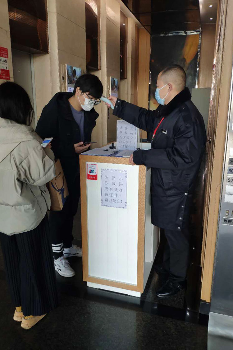 突如其來(lái)的疫情讓大家措手不及,人身安全和項(xiàng)目生存同樣重要。世貿(mào)廣場(chǎng)的工作人員在茅樹(shù)捷總經(jīng)理的帶領(lǐng)下,首先在思想上充分重視,組織上加以保障,第一時(shí)間成立了抗疫領(lǐng)導(dǎo)小組,積極遵循昆山高新區(qū)及中茵集團(tuán)在抗疫各階段的防控精神及防控布置,加強(qiáng)人員排查,做好數(shù)據(jù)上報(bào)工作,并未雨綢繆,2月3日即召集公司中層人員就疫情防控下公司各項(xiàng)工作進(jìn)行周密布置并分頭實(shí)施,最終確保公司各項(xiàng)防疫物資充足到位,現(xiàn)場(chǎng)管理既減崗減人又確保管理有效,及時(shí)了解各項(xiàng)復(fù)工政策,確保商業(yè)街及寫(xiě)字樓的商戶(hù)能有序、安全開(kāi)展復(fù)工復(fù)產(chǎn)。