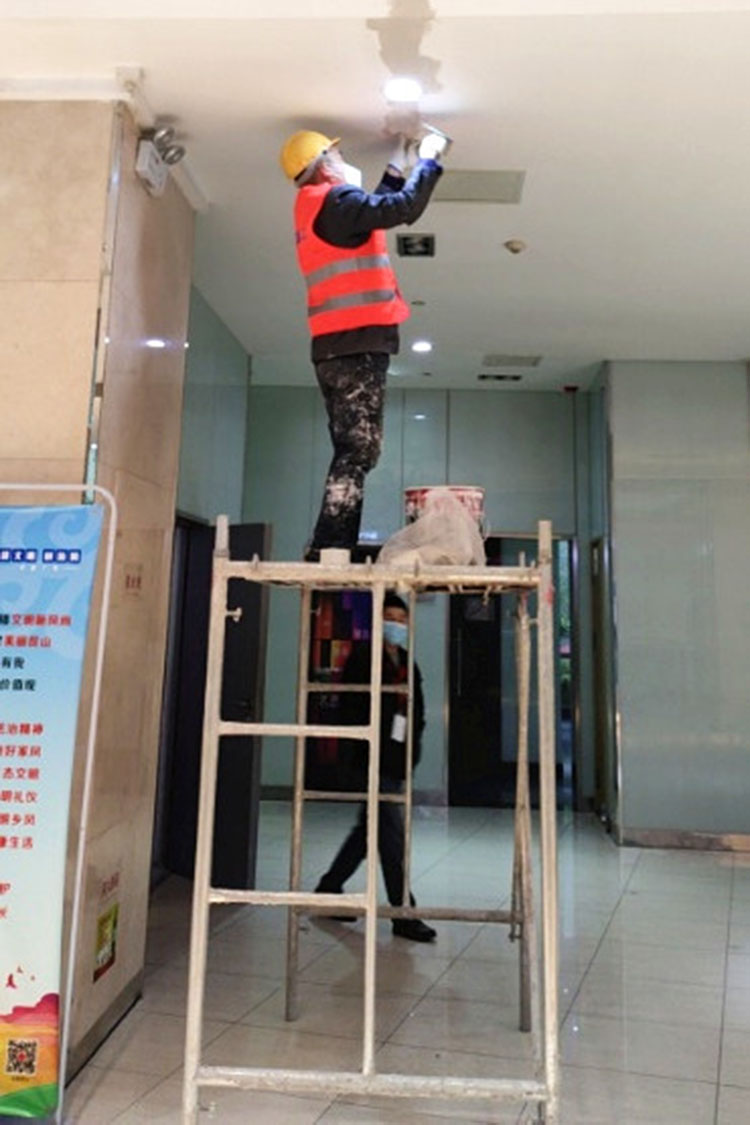 這樣的守崗還有我們的工程人員,疫情期間,現(xiàn)場(chǎng)的維修工作正常進(jìn)行著,照明、衛(wèi)生間、過(guò)道整改、高配24小時(shí)值班,默默地為世貿(mào)廣場(chǎng)正常運(yùn)行和用電安全提供保障。